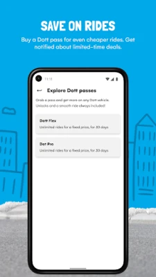 Choose your preferred discount right before you start a ride to save on travel. Explore Dott passes to save per day, week or month — or just pay as you go for now and choose one next time you ride. You can pick from promos you’ve added, referral bonuses you've earned, or limited-time local deals – it’s up to you!