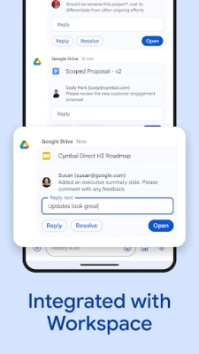 • Stay on top of requests, comments and approvals with the Google Drive app for Chat